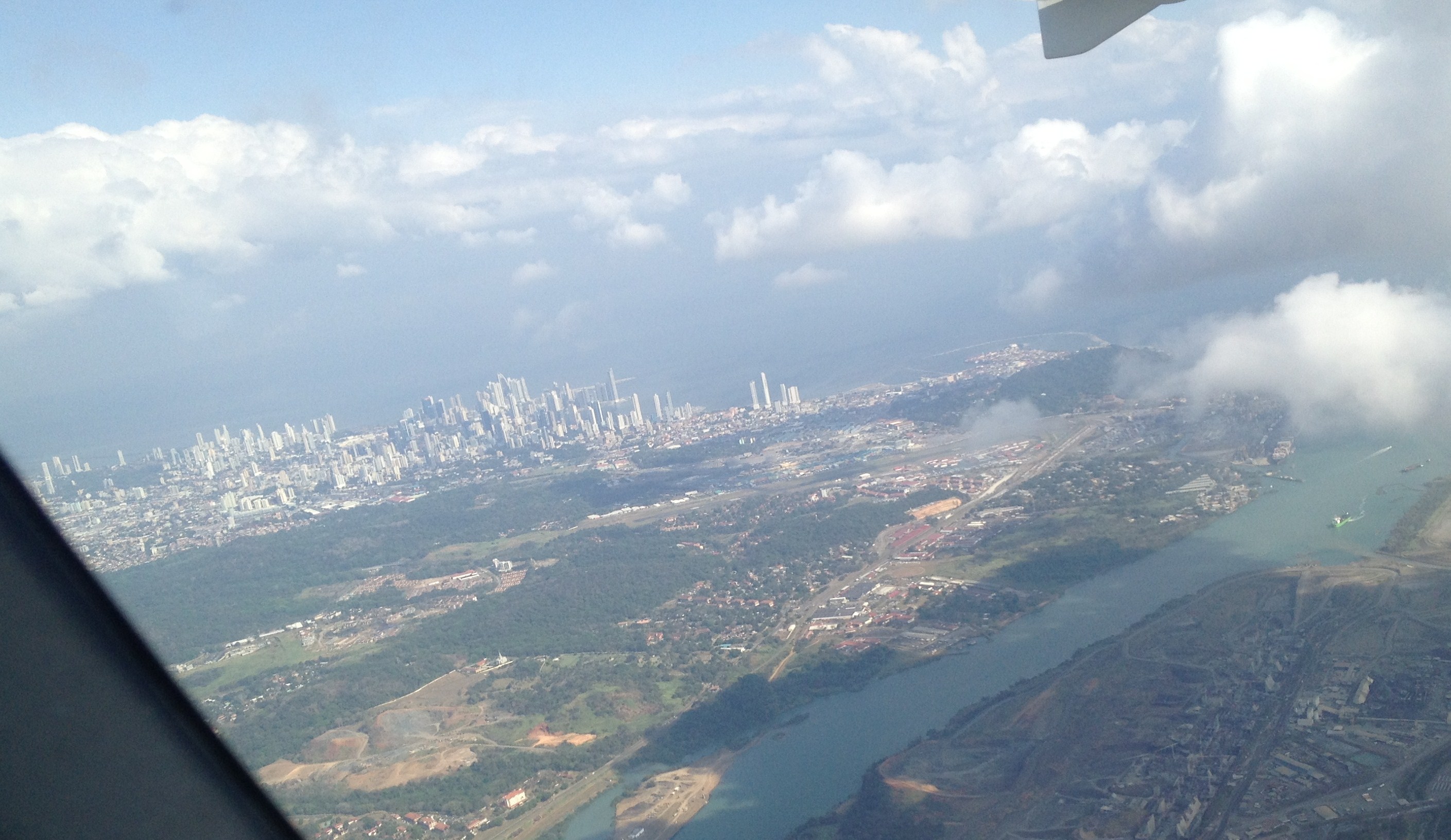 Der Anflug auf MPMG führt führt meist vom Pazifik her über die Kanaleinfahrt mit Ausblick auf die Wolkenkratzer der City. Als ich gestern nach Jahresdurchsicht von MPMG abflog, entstand gegen 16 Uhr dieses Bild: