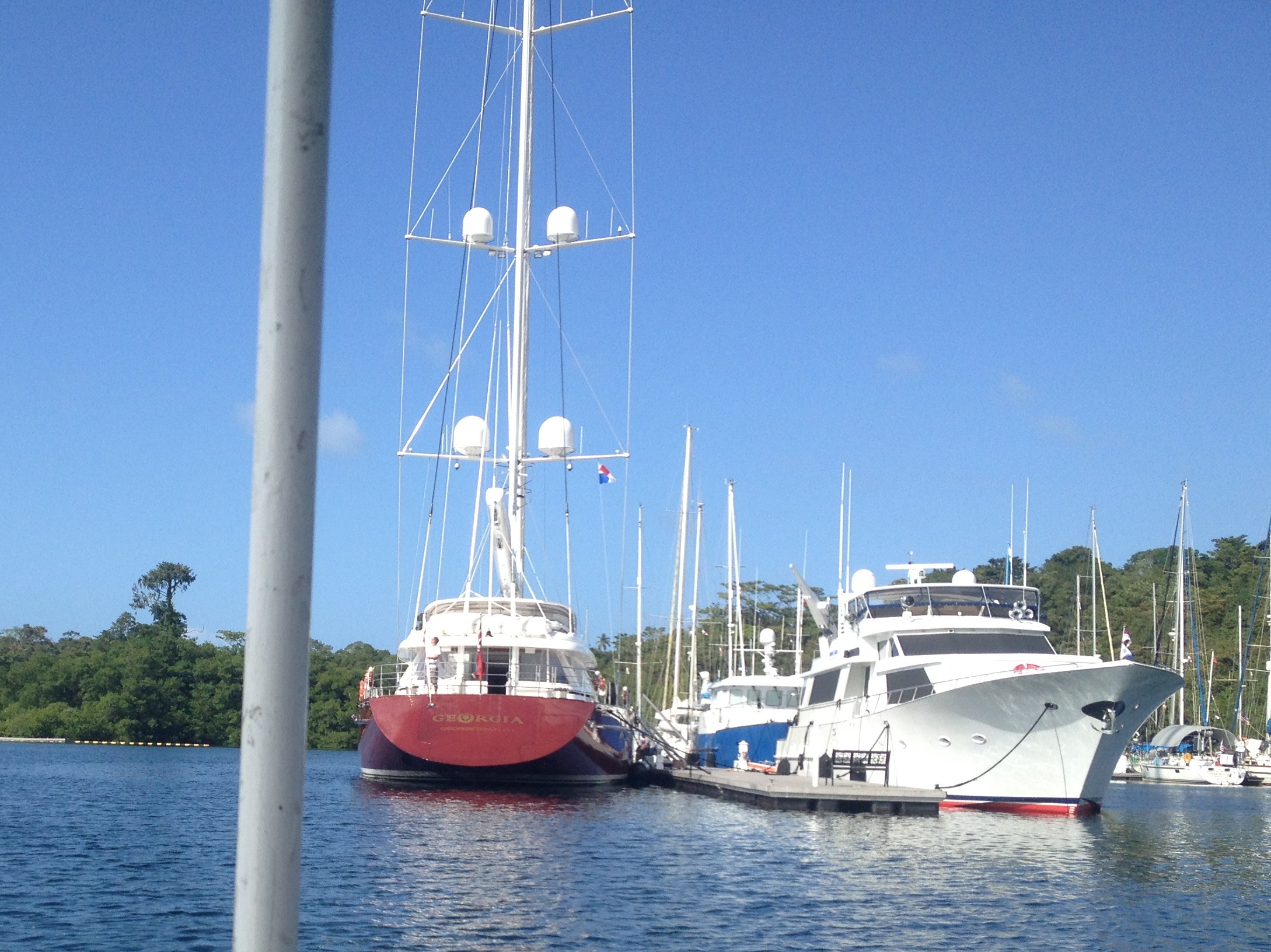 Unser Gastgeber hat ein Boot zur Abholung geschickt und mit 2 anderen Touristen steigen wir ein. Die wollen zum Red Frog Beach, der nicht weit von unserem Ziel entfernt ist. An der Red Frog Beach Marina liegen einige sehr schöne Yachten. Offensichtlich ein beliebtes Ziel.