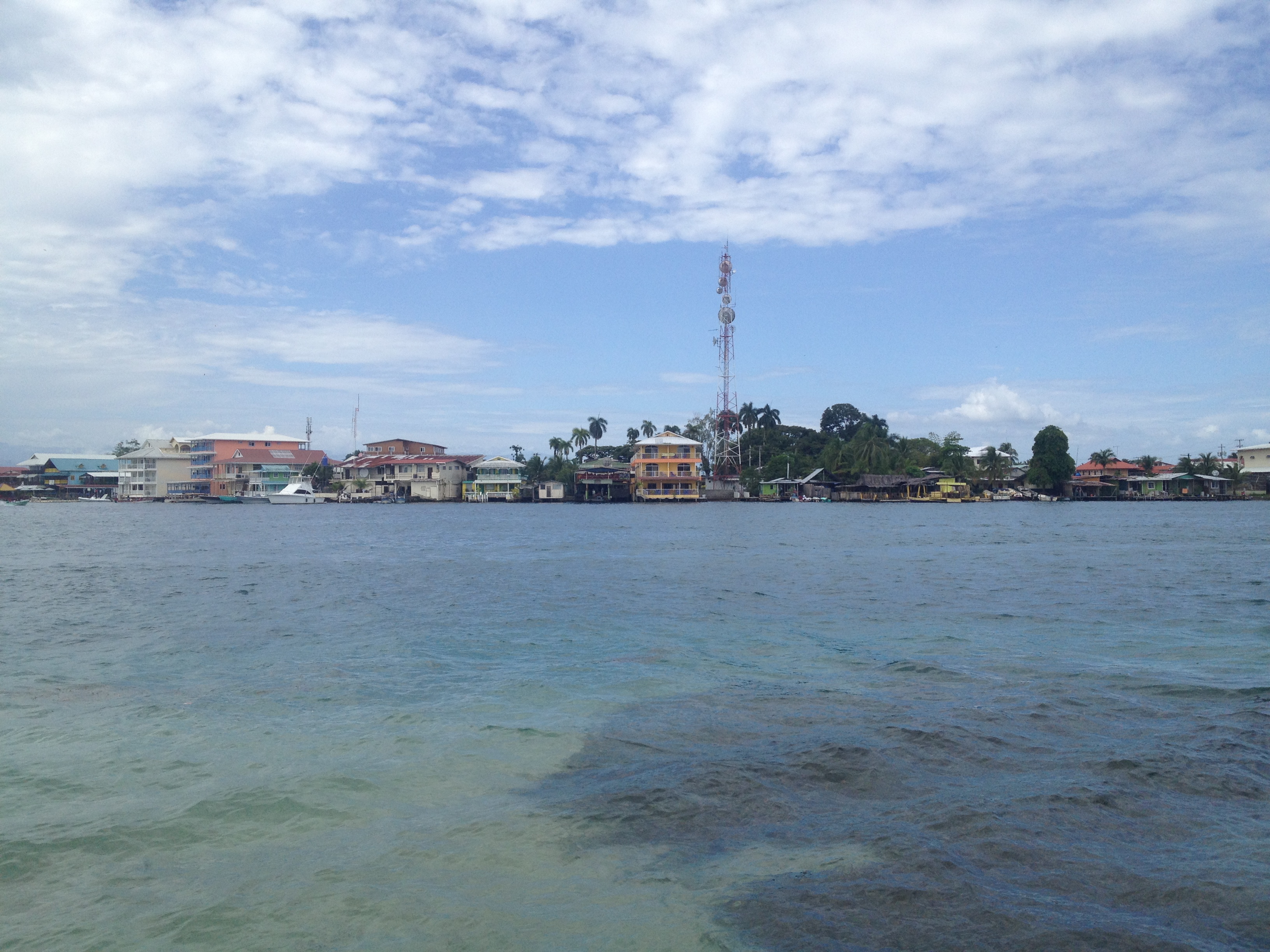 Die Leute von TAXI 25 erfassen alle Fahrgäste in einer Liste und rufen auf, wenn das Boot fertig ist für’s boarding. Ca. 30 Leute passen rein, Schwimmwesten sind Pflicht. Und dann geht es hinaus in die Karibik. Es dauert ca. 30 Minuten bis wir auf der Isla Colon, der Hauptinsel des Archipels, anlegen. Das übliche Karibikfeeling: gelassen, bunt, schmutzig.