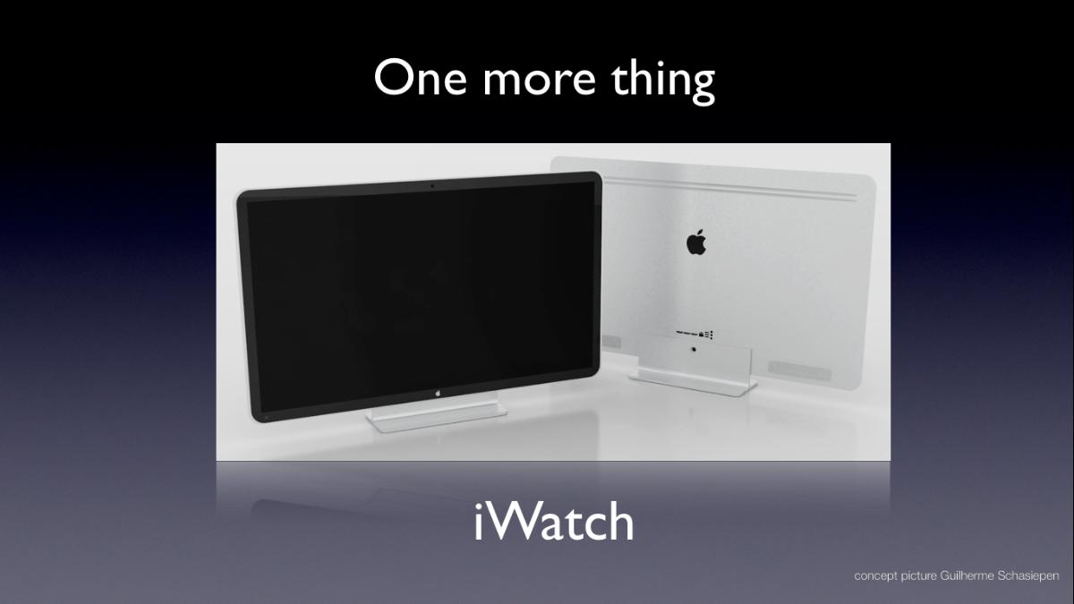 Der Blogger des obigen Beitrags sieht aber in „iWatch“, als Uhr am Handgelenk, eher „I watch“, also den ebenso lange erwarteten TV von Apple und gibt gute Gründe für seine Vermutung.