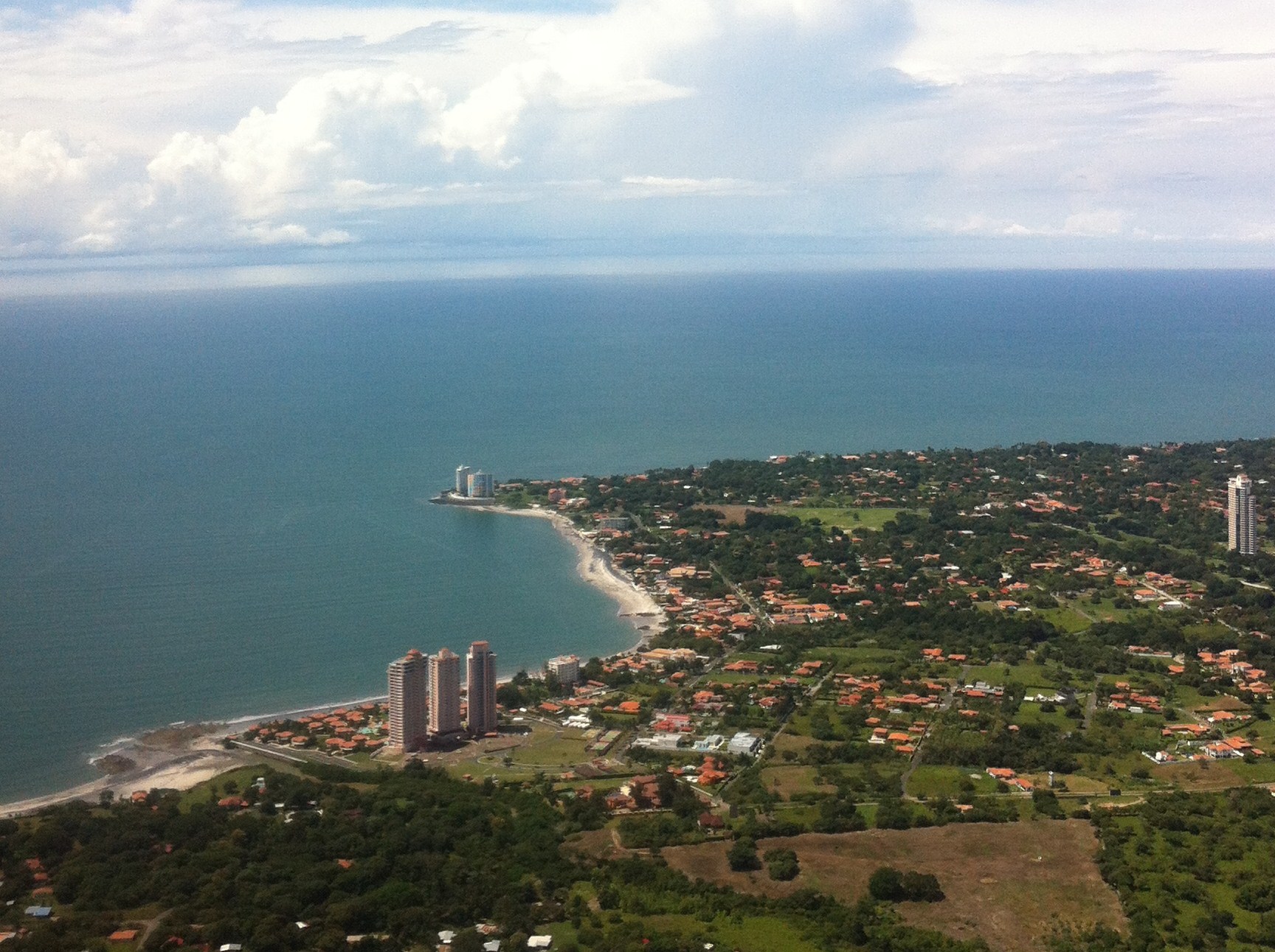 Start in Chame und wir fliegen über Coronado kurz entlang der Pazifikküste, drehen über Punta Chame nach Norden. Gute Sicht heute, aufgelockerte Bewölkung.