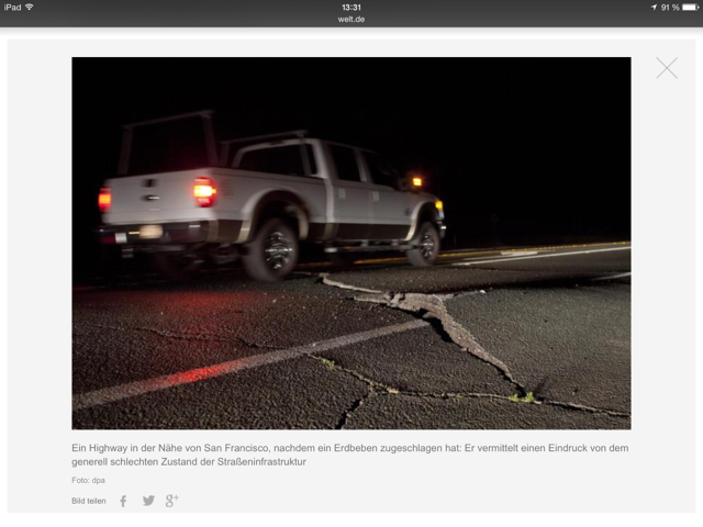 Tina Kaiser schreibt heute auf Welt Online (www.welt.de) „Amerika kann sich seine Highways nicht mehr leisten“ und meint damit wohl die USA. Die angeblich marode US-Infrastruktur ist ja ein beliebtes Thema der deutschen Medien. Es gibt da unübersehbar einen „großer-Bruder-Komplex“, wo man sich über jede Kleinigkeit freut, die zeigt, dass bei dem doch nicht alles so toll ist. Verstanden.
