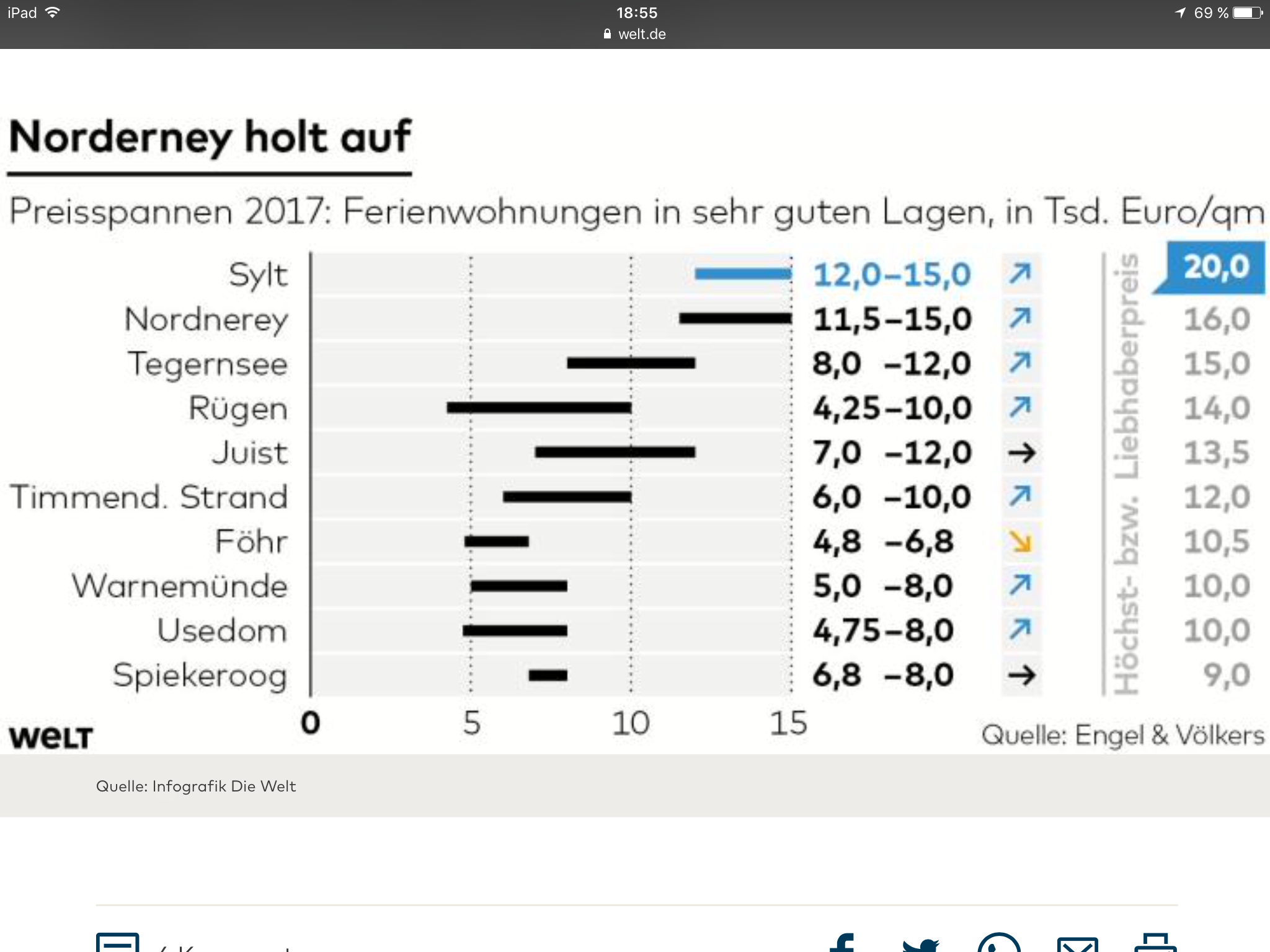 Falls ich mir nun, rein hypothetisch, auf der Insel eine Ferienwohnung zulegen würde, müsste ich dafür ganz schön tief in die Tasche greifen. Siehe diese Tabelle: