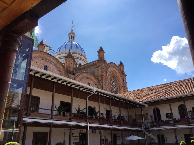 Unsere Freundin Peggy, die seit 2 Jahren hier lebt, hat uns aufgelesen und führt uns nun durch ihre temporäre Heimat, die eigentlich Santa Ana de Quatro Rios de Cuenca heißt und als europäischste Stadt in Ecuador bezeichnet wird. Sie wird aufgrund ihrer historischen Architektur auch als UNESCO Welterbe geführt. Auf 2600 m gelegen hat Cuenca selbst laut Wikipedia ungefähr 400.000 Einwohner, unter Einschluss der umliegenden Region sind es 700.000.
