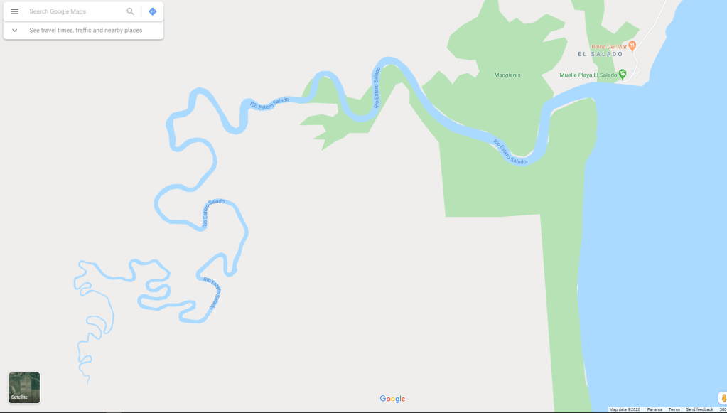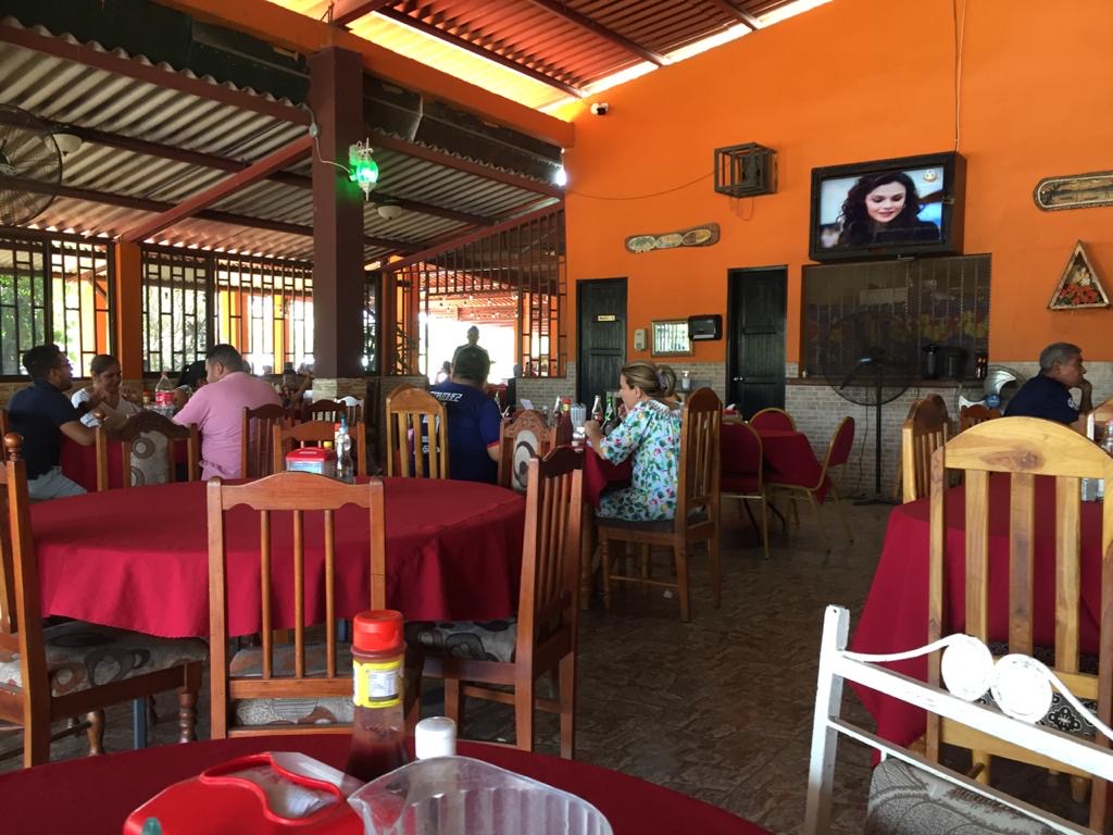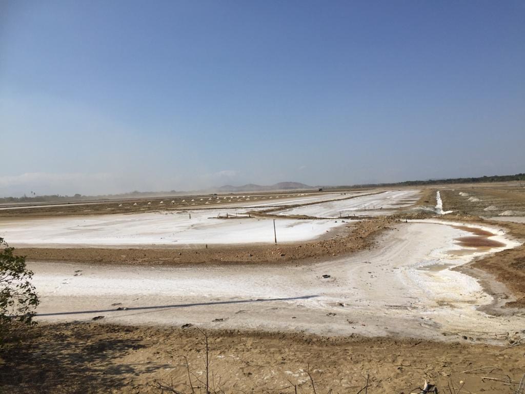 Der Sonntagsausflug führt uns mal wieder nach Aguadulce, ca. 75 km von zu Hause, direkt verbunden über die Panamericana. Wir sind zum Essen mit einem Freund im Reina del Mar verabredet. Das ist ein ziemlich großes, offenes Restaurant mit guter Küche, in der Siedlung El Salado und unweit der breiten Mündung des heftig mäandernden Rio Estero Salado. Auf dem Weg von Aguadulce zur Küste fahren wir durch die Salzfelder, wo die „Ernte“ im vollen Gang ist.