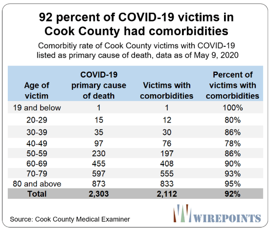 Mir ist heute ein interessanter Artikel untergekommen, der sich mit Covid-19 Sterblichkeit befasst, anhand der Daten von Cook County, Illinois. Mit etwas mehr als 3.700 Fällen ist das schon eine ganz nützliche Datenbasis und man erwähnt, dass es anderswo ähnlich aussieht.