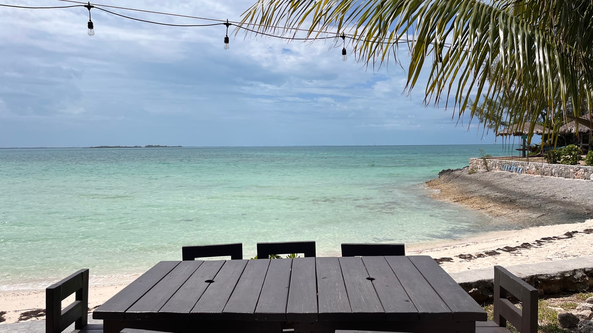 Für Mother’s Day am Sonntag haben wir eine Fähre nach Spanish Wells auf North Eleuthera gebucht, eine schmale Insel zwei Stunden von Nassau entfernt. Wir mieten einen Golfcart und fahren die einzige Straße nordwärts. Ein Anwohner bemerkt, dass wir auf der Suche sind und fragt nach. Kaffee suchen wir und er schickt uns ein paar Kilomter weiter zur Sand Bar. Dort kommen wir gerade recht zum Muttertagsbrunch, nachdem wir auf dem Weg schon mal ins Wasser gesprungen waren. Gutes Essen, guter Kaffee.