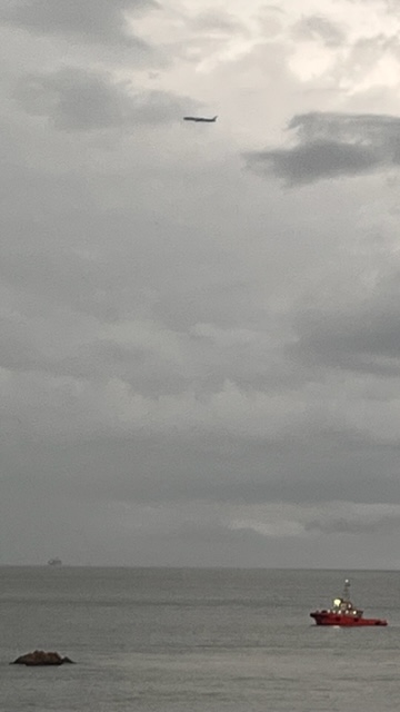Glück hat die KLM, die mit 1:45 Stunden Verspätung Amsterdam verlassen hat und nun nach dem Durcheinander hier bei uns vorbei in den Endanflug geht, ohne Umleitung oder Warteschleifen, aber auf den letzten Kilometern nochmal einem Gewitter ausweichen muss.