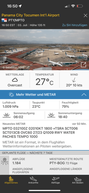 Die Copa-Maschine aus Cancun hatte drei volle Warteschleifen zu fliegen, die Copa-Maschine aus Rio de Janeiro wurde zum 100 km entfernten Rio Hato (MPSM) umgeleitet und am schlimmsten erwischte es die Eurowings aus Frankfurt: Warteschleife schon vor der Karibikküste, dann wurde sie in Richtung Westen geschickt und schließlich nach Cartagena in Kolumbien umgeleitet. Nach Flugzeit von 12:10 Stunden im falschen Land.