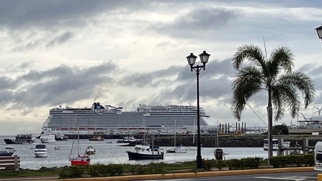 Und seit das Kreuzfahrt-Terminal auf Isla Flamenco, also nur 2 km von uns entfernt in Betrieb ist, zunehmend auch Kreuzfahrtschiffe.