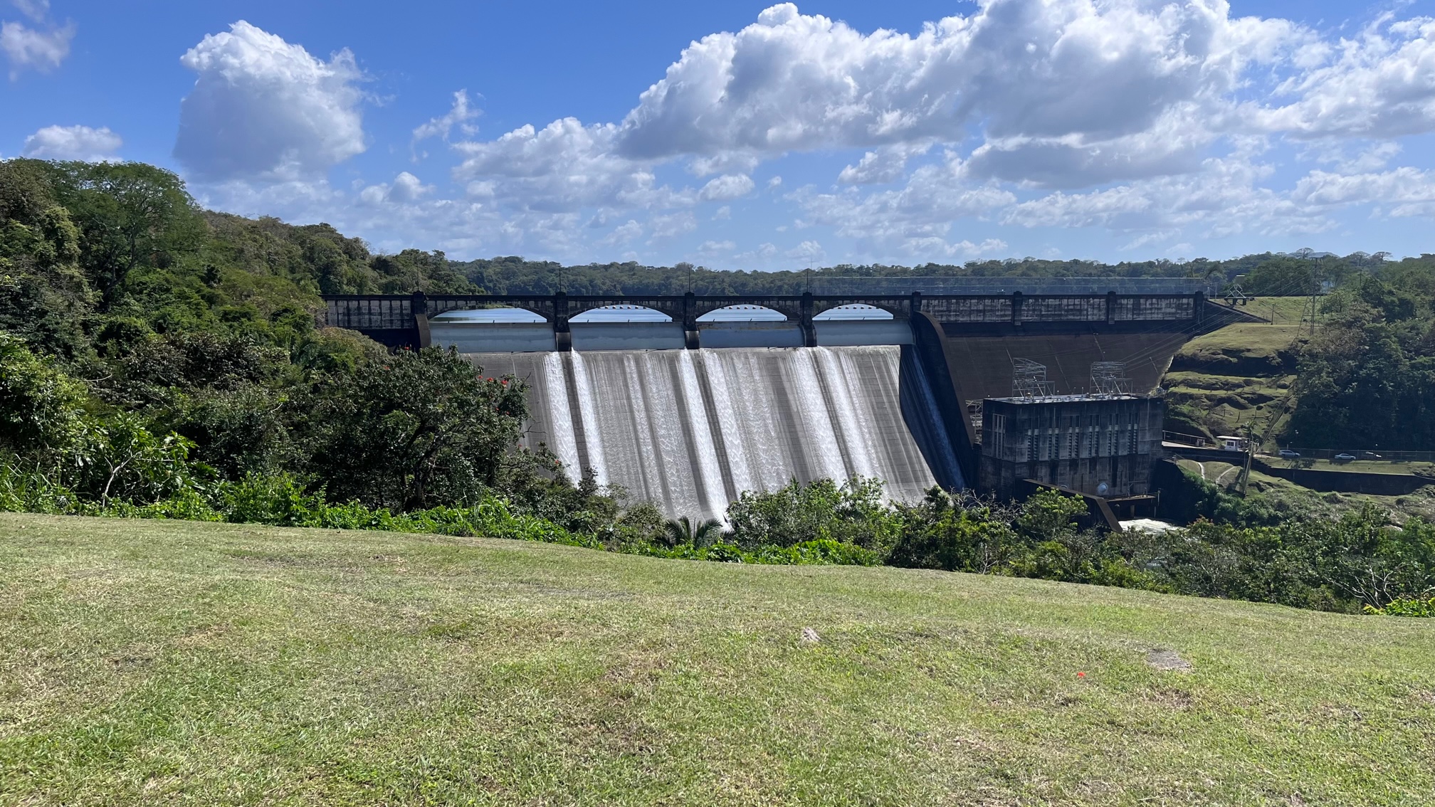 Nicht am weit entfernten Fortuna-Stausee in den Bergen von Chiriqui sondern am Madden Damm, nur 40 Autominuten nordöstlich der Hauptstadt. Wie man im Bild sehen kann, ist alles in Ordnung, das Wasser fließt und erzeugt Energie. Gut für Panama.