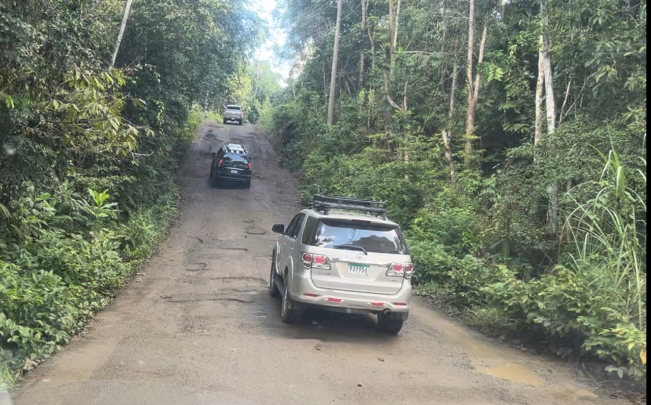 Zu Land gibt es nur einen Zugang in die Comarca: auf einer 40 km langen Sraße über die Berge, die bei El LLano von der gut ausgebauten Panamericana nach Norden an die Küste abzweigt. Diese 40 km sind nur im SUV zu befahren, dem man auch einiges zumuten kann. Wir haben für die Strecke ca 90 Minuten gebraucht und der Verbrauch lag dabei über 15 Liter pro 100 km.