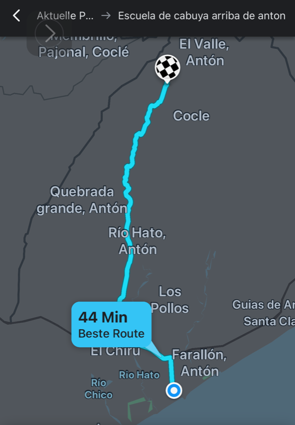Der Blick auf Google Earth mit Höhenprofilen und auf Maps hat mir gezeigt, dass eine Siedlung namens Cabuya Arriba optimal sein könnte. Es liegt auf 650 Meter über NN und die Straße führt danach auf wenigen Kilometern nochmal 200 Meter höher.